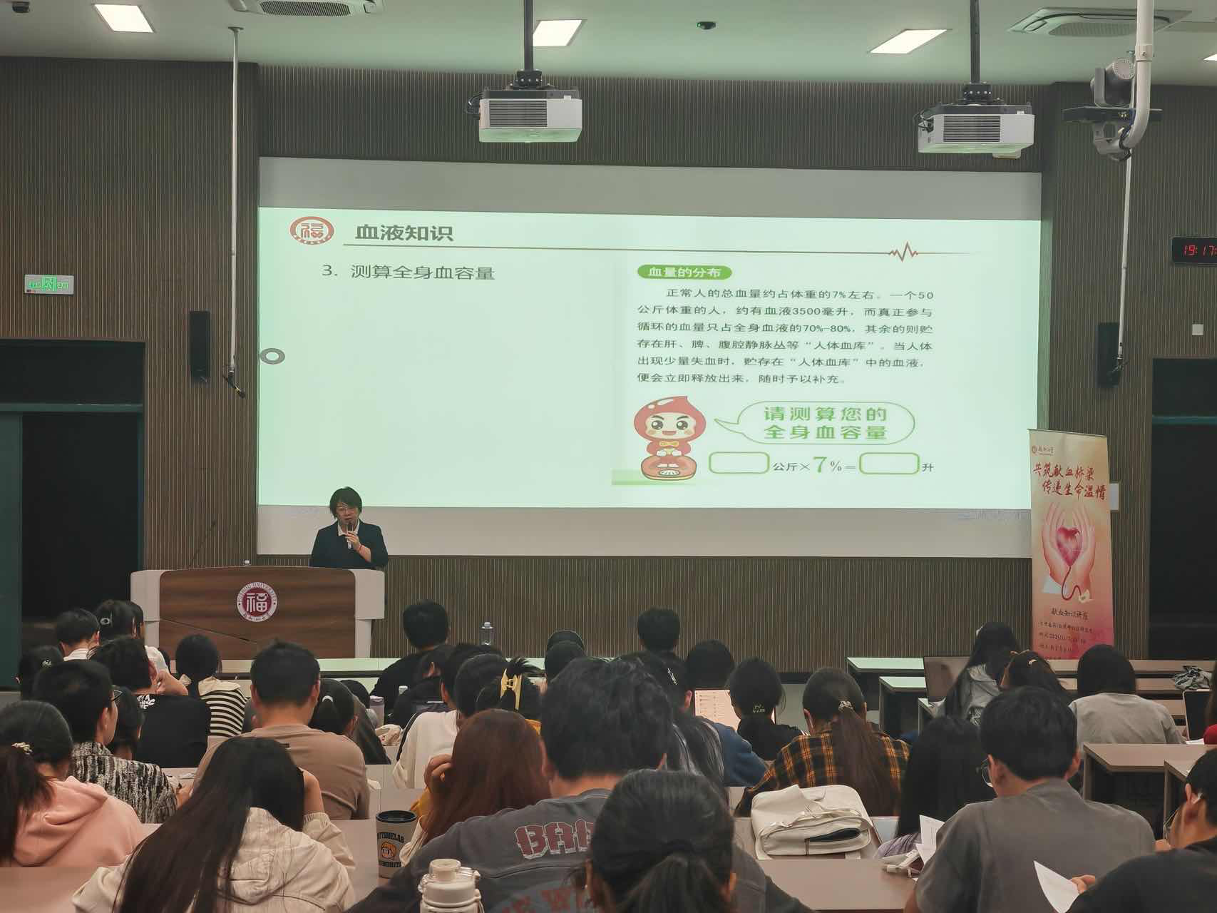 为引导青年学子科学参与无偿献血公益事业,2025年11月7日,福州大学红十字会联合福建省血液中心,在旗山校区多功能报告厅举办“共筑献血桥梁,传递生命温情”无偿献血宣讲会,福建省血液中心资深专家陈辉老师担任主讲,百余位学生到场聆听学习。