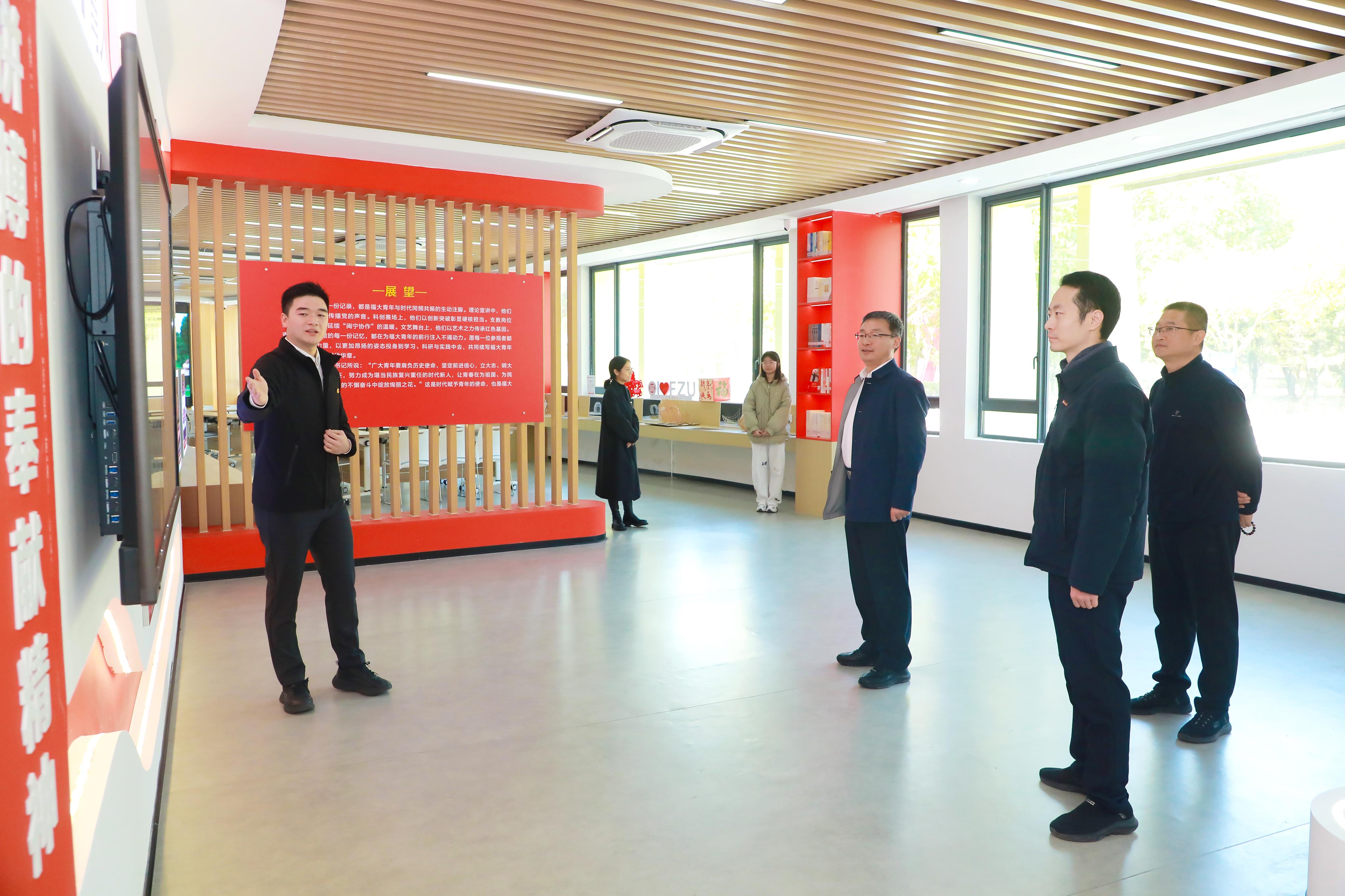李永亮副主任走访参观了福州大学“青年之家”,听取了福州大学在加强青年思想政治引领、深化闽台青年交流、铸牢中华民族共同体意识等方面工作的介绍,对学校立足青年特点,打造有内涵、有温度、有影响力的青年工作品牌给予充分肯定。