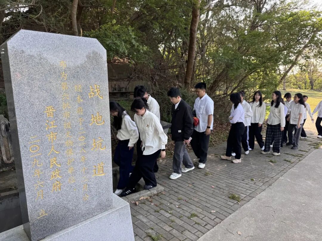 在晋江安业民烈士陵园,先进制造学院师生联合当地各单位、中小学缅怀先烈英魂,重走安业民坑道,厚植爱国情怀,传承红色血脉。