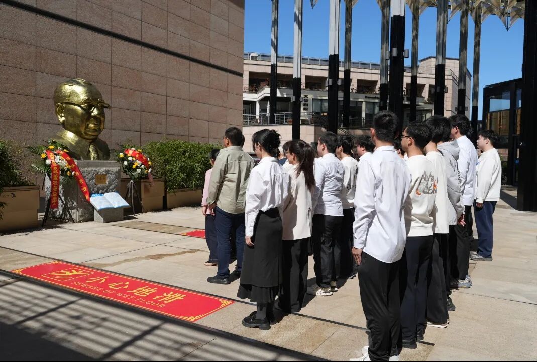 在旗山校区卢嘉锡先生铜像前,师生代表们怀着崇高的敬意和无尽的怀念,向先生三鞠躬,并敬献花束,不忘来时路,奋进新征程。