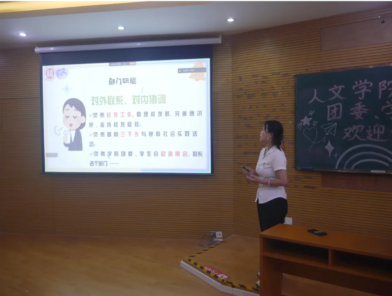 9月20日晚7点,人文学院团委、学生会于铜盘校区B113教室开展纳新宣讲会。人文学院2025级本科新生线下参与,2025级音乐学新生在旗山校区线上参加。本次宣讲会由严婉蓉同学主持。