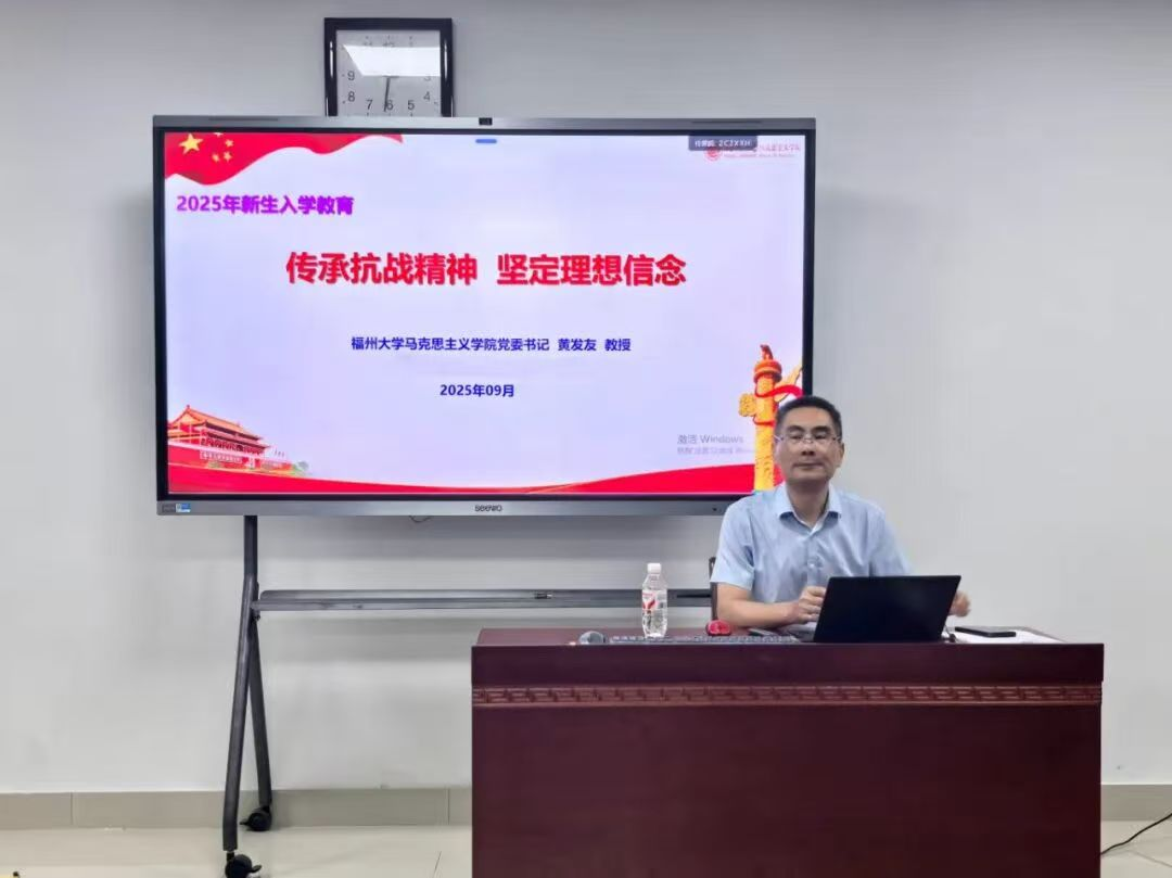为深入贯彻习近平总书记在纪念中国人民抗日战争暨世界反法西斯战争胜利80周年大会上的重要讲话精神,9月15日上午,马院党委书记黄发友教授于学院102教室为2025级研究生新生上《传承抗战精神 坚定理想信念》主题党课。