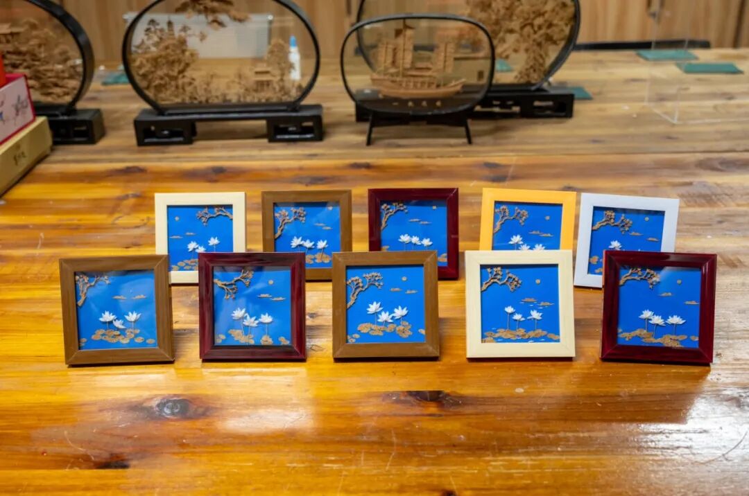 在福州西园软木画非遗工作室,实践队队员们在指尖体验与匠心对话中感受软木画的传承与新生。体验环节中,队员们拿起刻刀,才知看似简单的工序藏着大学问。软木质地松软,刻荷花花瓣时,轻了刻不出层次感,重了便会碎裂;粘贴花茎与荷叶时,角度偏差一丝,便没了荷塘清韵的灵动,反复尝试三四次,才勉强把薄如蝉翼的花瓣拼接成型。指尖触到软木的质感、耳畔回响刻刀轻响、鼻尖萦绕原木清香,这才真切体会到"匠心"二字的重量——那是精益求精的态度,是持之以恒的坚守,更是守正创新的智慧,也让队员们对非遗传承的核心要义有了更深刻的感悟。