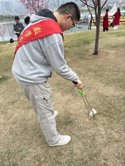 雷锋月里传美德,环保志愿践初心。为践行绿色发展理念,传递环保正能量,更以实际行动传承雷锋精神,数统学院在3月21日组织青年志愿者开展"保护环境・守护旗山湖"志愿清扫活动,让雷锋精神在环保实践中闪光,用责任与担当践行志愿服务的初心使命。志愿者们不怕脏、不怕累,穿梭在湖边步道、草坪角落,用双手清理垃圾,用行动传递环保理念,更用坚守与奉献诠释着"奉献、友爱、互助、进步"的志愿精神,延续着雷锋同志服务他人、奉献社会的初心。