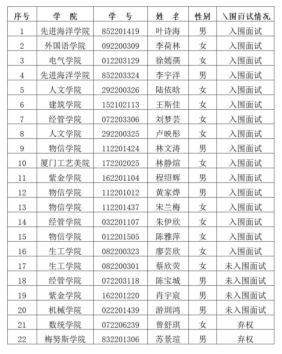 (3)考生面试成绩将在共青团福州大学委员会官方网站公布。