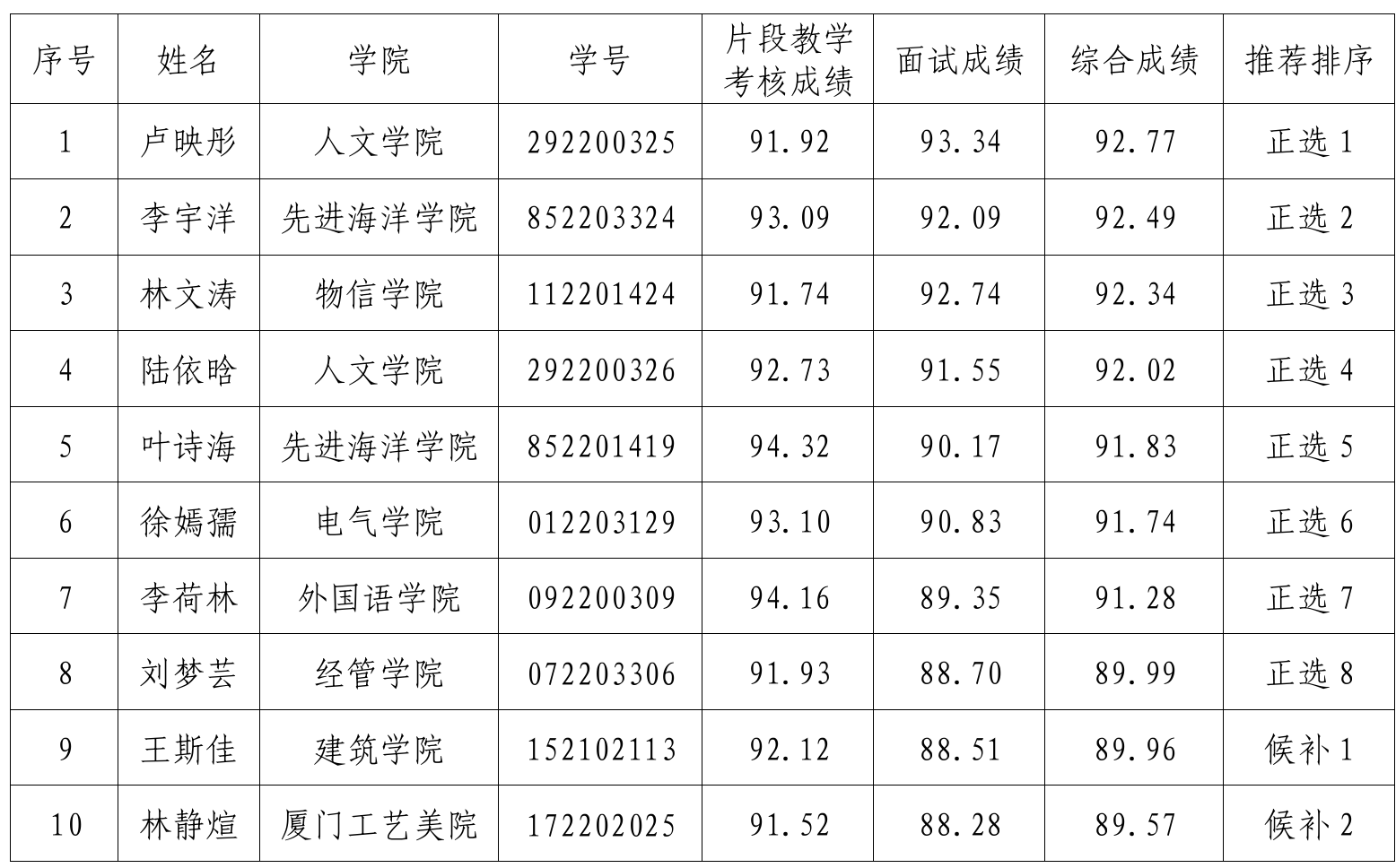 根据《关于组建福州大学第28届研究生支教团有关工作安排的通知》(校团〔2025〕5号)要求,经本人申请、学院推报、资格审查、片段教学考核、面试考核,确定卢映彤等8位考生为我校第28届研究生支教团拟入选志愿者,王斯佳等2位考生为候补人选,现予以公示:
